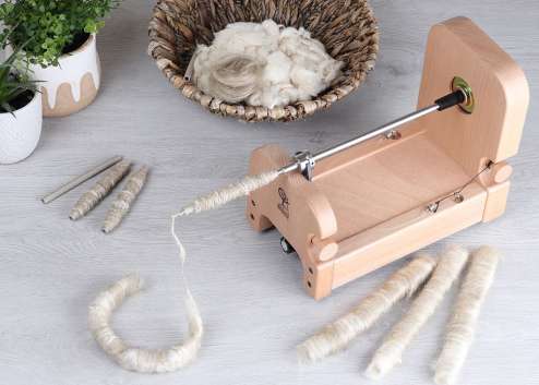 Whether you’re prepping for weaving or spinning textured yarns off the point, this clever accessory adds versatility to your setup without taking up more space. Simply remove the flyer, pop on the spindle, and you are ready to wind or spin with control and precision.