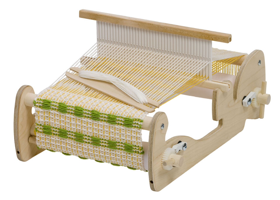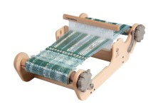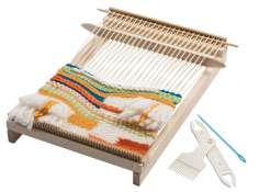 We have in stock small looms that are easy to take with you. They take little time to warp and are fun to weave on. When you’re done, they store away in a small space.